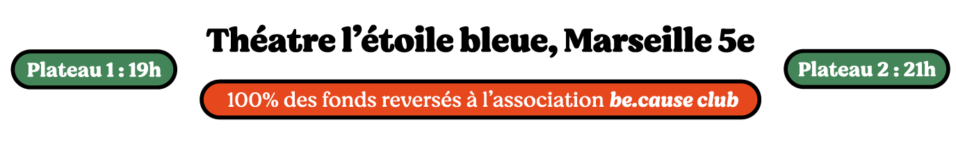Cette soirée de stand-up est organisée au profit de Be.Cause Club, une association qui accompagne les femmes touchées par le cancer en leur offrant des soins supports de qualité en dehors du cadre hospitalier.